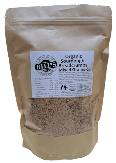 Our Mixed Grains sourdough breadcrumbs are made from our Certified Organic sourdough grain breads - grains are Linseed, Chia, Quinoa, Sunflower, Rye and Oats.